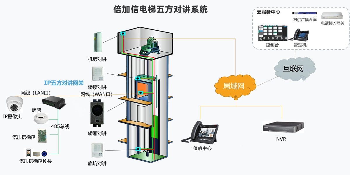 五方對講:通過倍加信電梯對講網(wǎng)關(guān),與電梯原四方對講實(shí)現(xiàn)無縫對接,實(shí)現(xiàn)與控制中心五方對講。