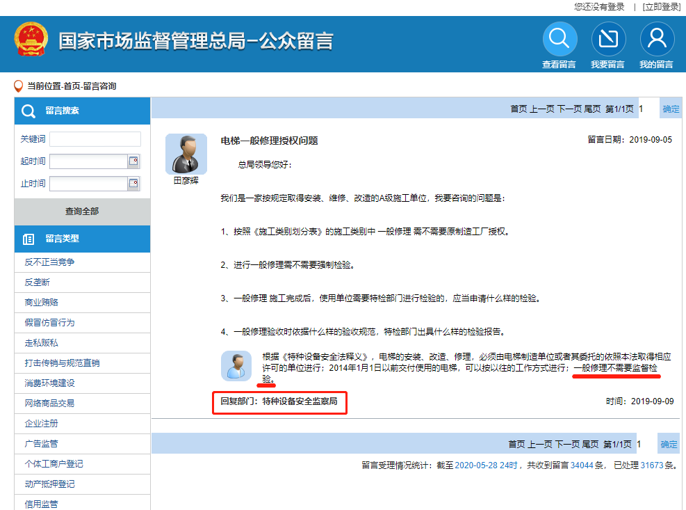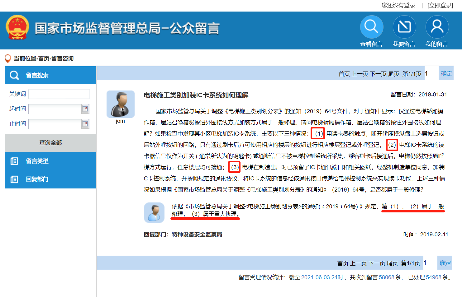 2、國家市場監(jiān)督管理總局回復加裝梯控哪種是一般修理和重大修理